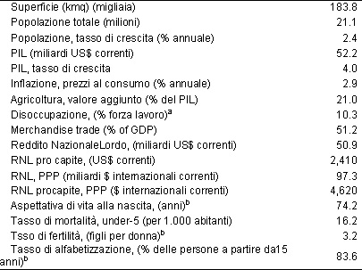 Tabella 1 - Indicatori socio economici, Siria, 2009