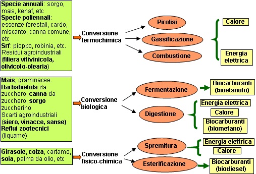 L’utilizzo della biomassa per fini energetici è fortemente incentivato dal punto di vista legislativo, politico ed economico, ma richiede specifiche tecnologie capaci di trasformare l’energia contenuta nella stessa biomassa, sotto forma di legami chimici, in altre forme direttamente utilizzabili dall’uomo, come il calore, l’energia elettrica, l’energia meccanica, la frigoria. Le politiche incentivanti sono una condizione necessaria ma non sufficiente per il successo di iniziative imprenditoriali nel settore delle agroenergie; occorre un’attenta valutazione della fattibilità in funzione delle risorse produttive e umane locali.