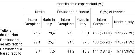 I risultati evidenziano come le imprese che producono beni tipici del “Made in Italy”, in media, hanno un livello di esportazioni nelle aree a basso reddito inferiore dell’80% rispetto alle altre imprese. Il risultato forse più sorprendente, tuttavia, emerge dalla terza e quarta colonna della tabella 3.