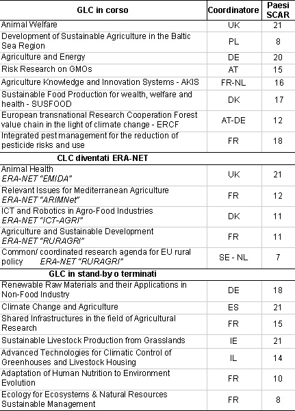 L’istituzione di tali gruppi costituisce un meccanismo alternativo meno formale e più flessibile del meccanismo ERA-NET del programma quadro dell'UE, pur avendo lo stesso obiettivo: incentivare e quindi rafforzare la collaborazione nella ricerca tra finanziatori e gestori dei programmi in settori di ricerca fondamentali. Dal 2005 sono stati istituiti 20 GLC da paesi europei che si sono impegnati, volontariamente e in base ad una geometria variabile, a definire, sviluppare e attuare programmi di ricerca comuni basati su un'idea condivisa circa il modo di affrontare le principali sfide nel settore della ricerca agricola. I GLC lavorano in modo analogo alle reti ERA-NET, giacché seguono lo stesso approccio per tappe, incentrandosi sullo scambio d'informazioni nelle fasi iniziali, individuando le carenze della collaborazione nelle aree di ricerca e nelle priorità e, laddove opportuno, varando attività congiunte. L’impegno e il dinamismo di 5 specifici GLC si sono tradotti in altrettante proposte di progetti ERA-NET che sono state accolte con successo e finanziate.