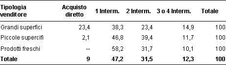 Tabella 2 - Relazione tra tipologia di punti vendita e lunghezza della catena distributiva (% di punti vendita)