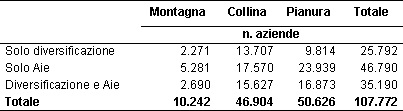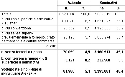 ** Aziende con meno di 3 colture e aziende con almeno 3 colture ma con la principale > 75% della superficie a seminativo