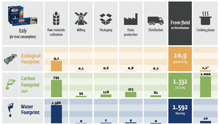 Figura 1 - Ecological, Carbon e Water Footprint della pasta Barilla in Italia