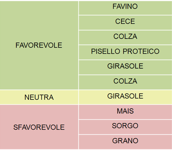 Figura 6 - Classificazione delle precessioni colturali in funzione degli effetti sulla coltivazione del grano duro