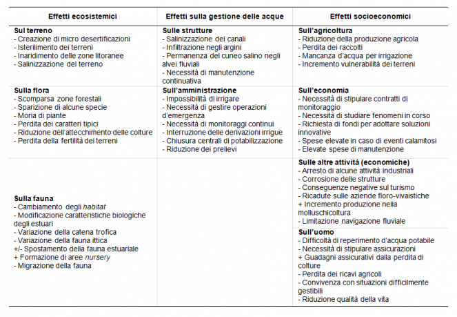 Tabella 1 - Effetti provocati dall’intrusione salina nel delta del Po
