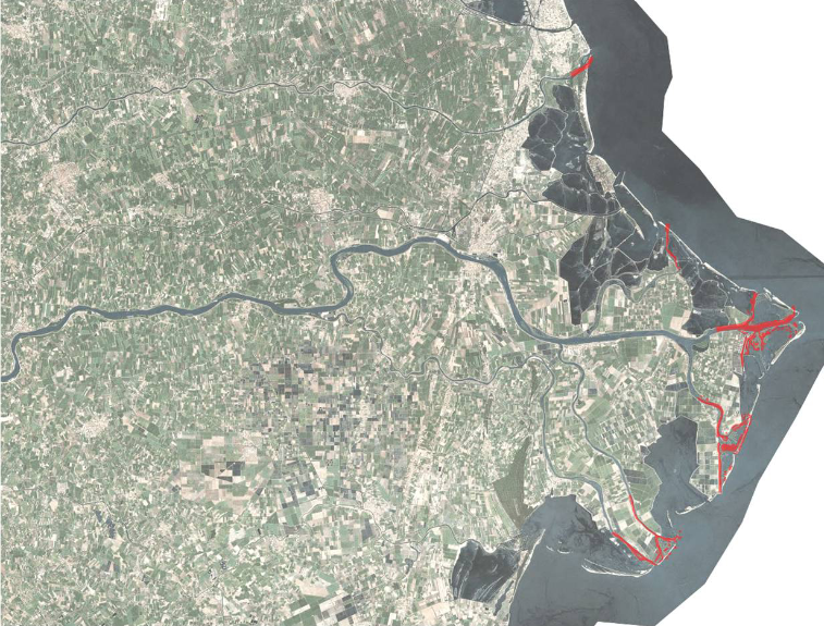 Il cuneo salino è un elemento caratteristico degli ambiti costieri e in particolar modo delle foci deltizie. Il delta del Po rappresenta un caso studio ottimale per l’analisi di questo processo che si sviluppa in corrispondenza degli alvei fluviali, delle falde acquifere costiere e dei suoli prospicienti la costa (Oude Essink, 2001). Questo determina la trasformazione delle acque dolci provenienti dal territorio in acque caratterizzate da gradi di salinità elevata, a seguito del fenomeno di mescolamento tra acque dolci e salate (Savenije, 2005). Ciò deriva dalla velocità della corrente, dall’inclinazione del fondale marino, dalla distribuzione della densità presente all’interno della colonna d’acqua, dalla stagionalità e dall’alternarsi delle portate d’acqua all’interno dell’ambito fluviale. L’intrusione salina avviene quindi secondo meccanismi diversi, in particolare nel caso l’afflusso d’acqua dolce risulti ridotto rispetto alle maree. L’acqua salata per tanto prevarrà comportando una riduzione delle acque dolci utilizzabili.