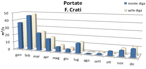 Figura 3 - Portate medie mensili in ingresso e in uscita dall’invaso di Tarsia 1986