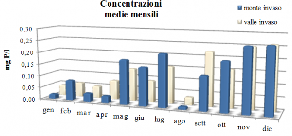 Figura 5 - Concentrazioni medie mensili a monte dell’invaso e a valle