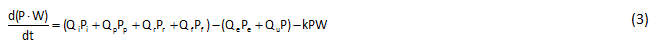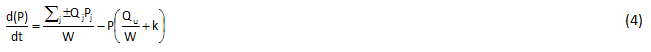 dove: QiPi =apporto di fosforo dall’immissario; QpPp =apporto meteorico; QrPr= apporto per ruscellamento; QfPf= apporto di falda; QePe= perso per evaporazione; QuP= in uscita dall’emissario e k= il tasso di consumo, t=tempo.