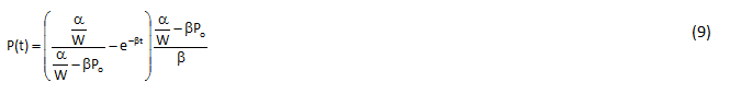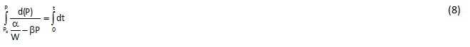 Sostituendo la (5), la (6) e (7) nella (4), separando le variabili e integrando tra la concentrazione iniziale Po alla P e tra 0 e t si ottiene: