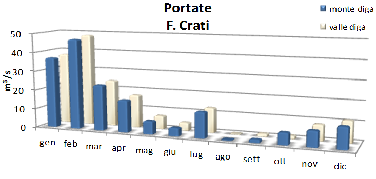 La stagionalità dell’invaso di Tarsia sul fiume Crati determina periodici cicli di accumulo ed erosione del fosforo; tali andamenti limitano la produttività delle acque invasate pur in presenza di consistenti apporti da monte. Diviene, dunque, necessario un controllo rigoroso della qualità delle acque onde evitare una loro involuzione verso stati eutrofici in funzione del loro utilizzo irriguo. Infatti, gran parte delle coltivazioni presenti nella piana di Sibari, che rappresenta la principale pianura calabrese per estensione e produttività, è irrigata dalle acque invasate dalla traversa di Tarsia. In particolare, nel territorio esteso lungo la riva idrografica sinistra del fiume Crati, in prossimità della sua foce, si è recentemente ripristinata la tradizione risicola finalizzata anche alla creazione di marchi di qualità, oltre alle ormai consolidate coltivazioni a pescheti, agrumeti ed orticole.
