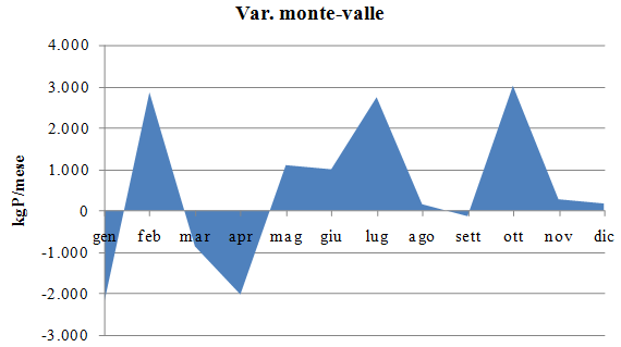 Figura 6 - Variazione del carico del fosforo totale tra la sezione a monte e quella a valle