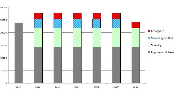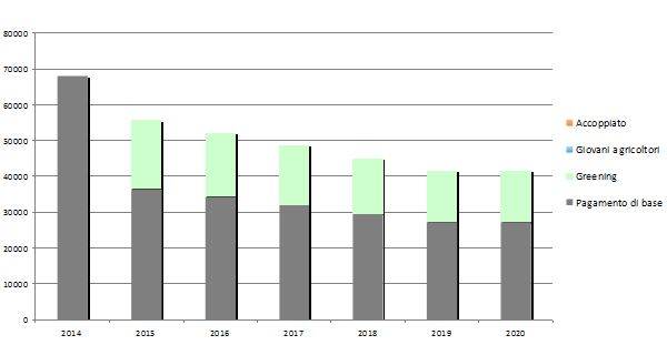 Figura 2 - Caso 2: pagamenti diretti dell'azienda 2014-2020