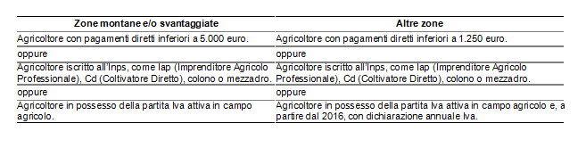 Tabella 5 - I requisiti dell’agricoltore attivo
