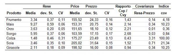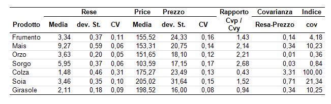 Tabella 1 - Variabilità delle rese e dei prezzi nel periodo 95-08