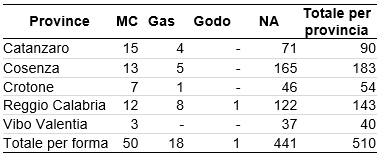 Tabella 1 – Forme e distribuzione territoriale delle filiere corte calabresi