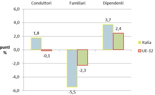 In una prospettiva di genere, prendendo in considerazione solo il 2010 e potendo quindi allargare il confronto a tutti i 28 Stati membri, gli indicatori del nostro Paese risultano leggermente più alti rispetto a quelli della media degli altri partner europei per quanto riguarda il livello manageriale (33,2% delle conduttrici sul totale contro il 29,8% della media UE-28) mentre sono praticamente equivalenti per quanto riguarda le coadiuvanti (43% della manodopera regolare femminile sul totale contro 43,2% della media UE-28).