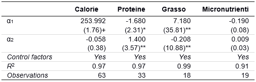 L'elasticità al reddito di calorie e micronutrienti è piuttosto stabile per fasce di reddito; risultato opposto è stato riscontrato per proteine e grassi.