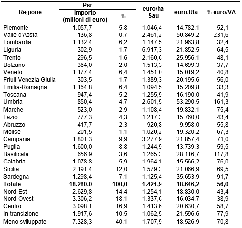 Seguono, in termini di “frammentazione dei programmi”, l’Italia, con 21 Psr regionali, un Psr nazionale relativo alla gestione del rischio, alla salvaguardia della biodiversità animale e all’uso efficiente delle risorse idriche e un Piano per la Rrn; la Spagna, con 17 Psr regionali, un Psr nazionale (competitività, risorse naturali, innovazione e approcci collettivi) e il National Framework; la Germania, con 13 Psr regionali, un piano per la Rrn e il National Framework.