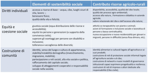 Tabella 2 - Sostenibilità sociale e ruolo dell’agricoltura