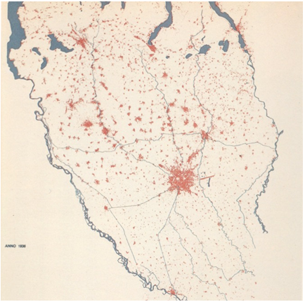 Figura 1 - Il rapporto tra territori agricoli e urbani al 1936