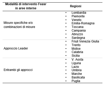 • regioni che intervengono nelle aree interne con misure specifiche e/o combinazioni di misure;