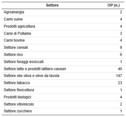 Il numero elevato di OP e Aop (Associazioni di Organizzazioni di Produttori) nel settore dell’olio e delle olive da tavola (147) non è il segnale di un particolare spirito associativo degli operatori di quel settore, ma semplicemente la necessità per gli olivicoltori di assumere la forma organizzativa di OP per potere accedere agli aiuti previsti dalla regolamentazione comunitaria ai programmi di sostegno per l’olio di oliva e le olive da tavola.