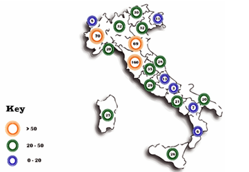 Figure 1 – Distribution of hosts in Italy at regional level