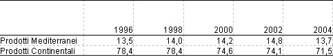 Infine, in termini di politica agraria i paesi mediterranei hanno trovato sotto l’ombrello della politica comune un sistema di protezione che spesso si è mostrato più debole e meno incisivo dell’impianto del sostegno assicurato ai prodotti continentali (INEA, 2006). Più nel dettaglio, come si evidenzia nella Tabella 1, va sottolineata la diversa distribuzione della spesa agricola tra prodotti mediterranei (olio di oliva, ortofrutta, tabacco) e continentali (cereali, prodotti zootecnici, oleaginose).