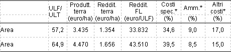 Tabella 4 – Principali variabili strutturali ed economiche delle aziende per area
