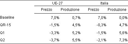 Tabella 2 - Impatto dei diversi scenari di riforma su prezzi e produzione del latte alla stalla (Var% 2015/08)