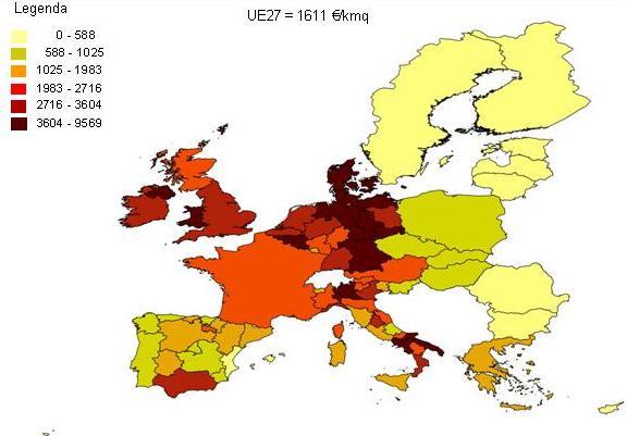 A fronte di una spesa media europea di circa 14 euro per persona e 1600 euro per chilometro quadrato, si può osservare come sia l’Europa continentale a presentare valori maggiori, che superano i 3.000 euro di spesa per chilometro quadrato e oltre i 18 euro per abitante, all’opposto dei nuovi Stati membri che si classificano nelle classi di spesa più basse in entrambi i denominatori utilizzati.