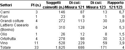 Il bando di attuazione del PIF3 richiedeva come criterio minimo di ammissibilità l’attuazione obbligatoria della misura 123 (trasformazione e commercializzazione delle produzioni agricole ed alimentari) e di una misura di sistema (111, 114, 124, 132, 133). Tutti i PIF approvati hanno presentato almeno tre misure, le due misure singole 121 e 123 e una o più misure di sistema.
