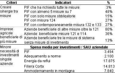 In fase di attuazione è quindi possibile valutare il grado di utilizzo integrato delle misure come elemento di base per valutare gli effetti sinergici anche in relazione alle diverse modalità e grado di attuazione contemporanea, sia all’interno del progetto sia all’interno delle singole imprese, con particolare attenzione a quelle del settore primario.