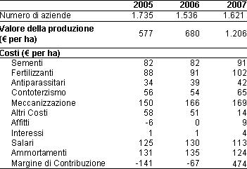 - 2. Nelle tabelle e nei grafici riportati le produzioni per ettaro (grano duro) o per tonnellata (latte) sono calcolati in base ai dati RICA, mentre i dati relativi ai costi sono originati dalla stima del modello GECOM e calcolati per quanto riguarda le attribuzioni fatte dai rilevatori.