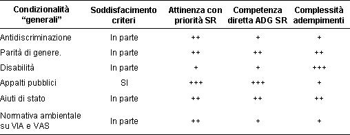 Il quadro di riferimento è tutt’altro che semplice e può essere ricco di insidie e rischi nel corso dell’attuazione dei programmi. In particolare, va in primo luogo evidenziato come la verifica delle diverse condizionalità sia subordinata al soddisfacimento di una serie di criteri, la cui valutazione non è sempre immediata e può presentare elementi di non univocità interpretativa.