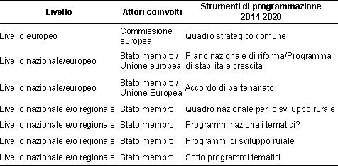 Tabella 1 - Strumenti di programmazione per il periodo 2014-2020