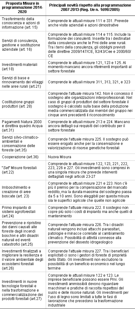 Fonte: Elaborazione Osservatorio Foreste Inea, da proposta regolamento UE 2014-2020