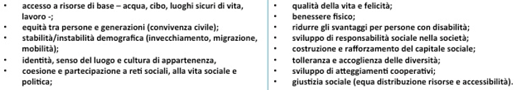 Tabella 1 - I requisiti per la sostenibilità sociale urbana
