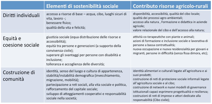 Tabella 2 - Sostenibilità sociale e ruolo dell’agricoltura
