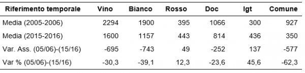 Fonte: ns elaborazione su dati inumeridelvino.it