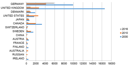 Fonte: ns elaborazione dati Eurostat (2000, 2010, 2016)