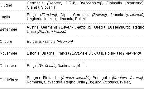 Tabella 2 – Presunta Agenda, non ufficiale, dei lavori del RDC per i 26 Stati Membri